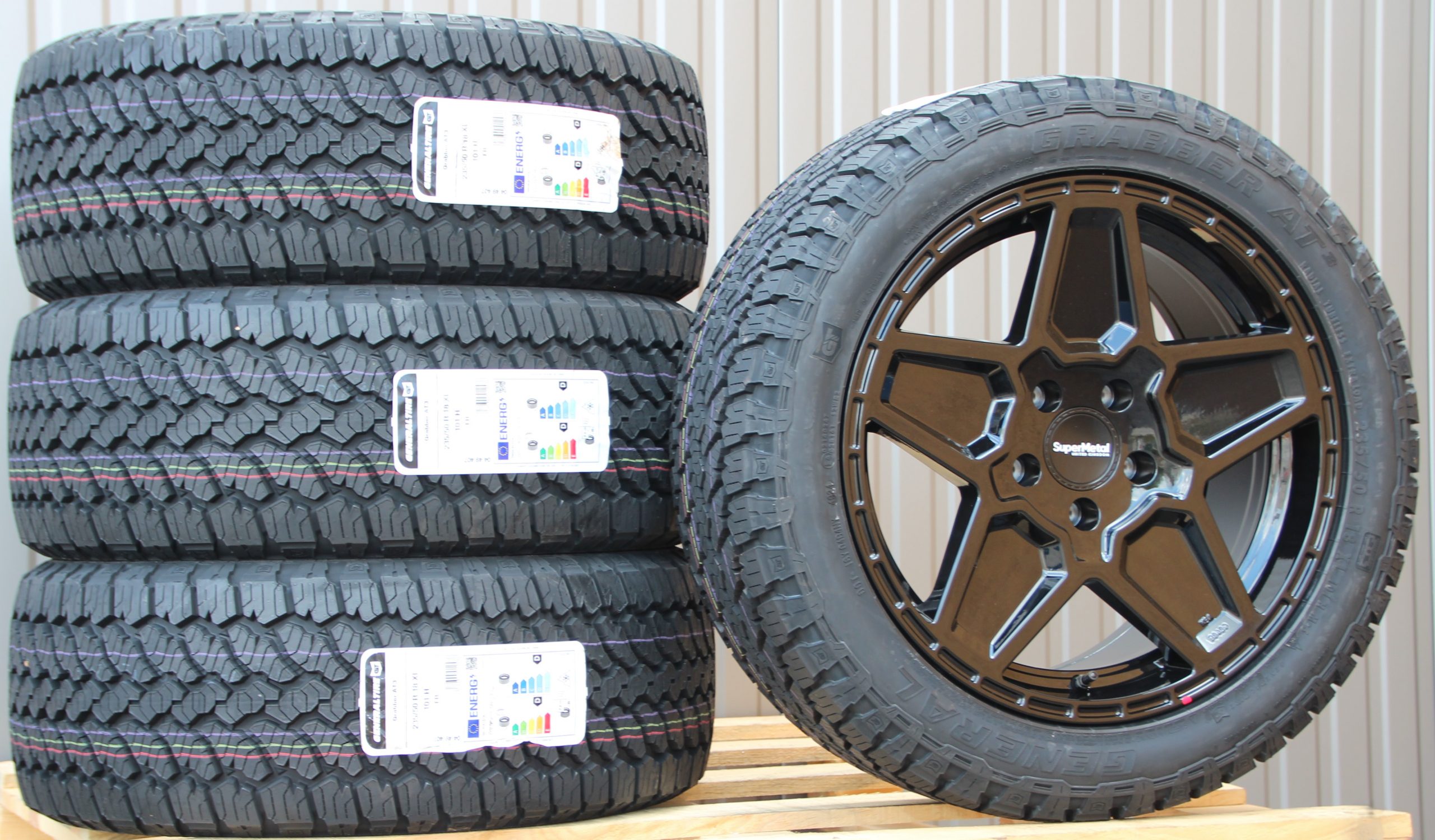 18 Zoll Räder Alufelgen Supermetal Rocket gloss black + General Grabber AT3 All Terrain Reifen